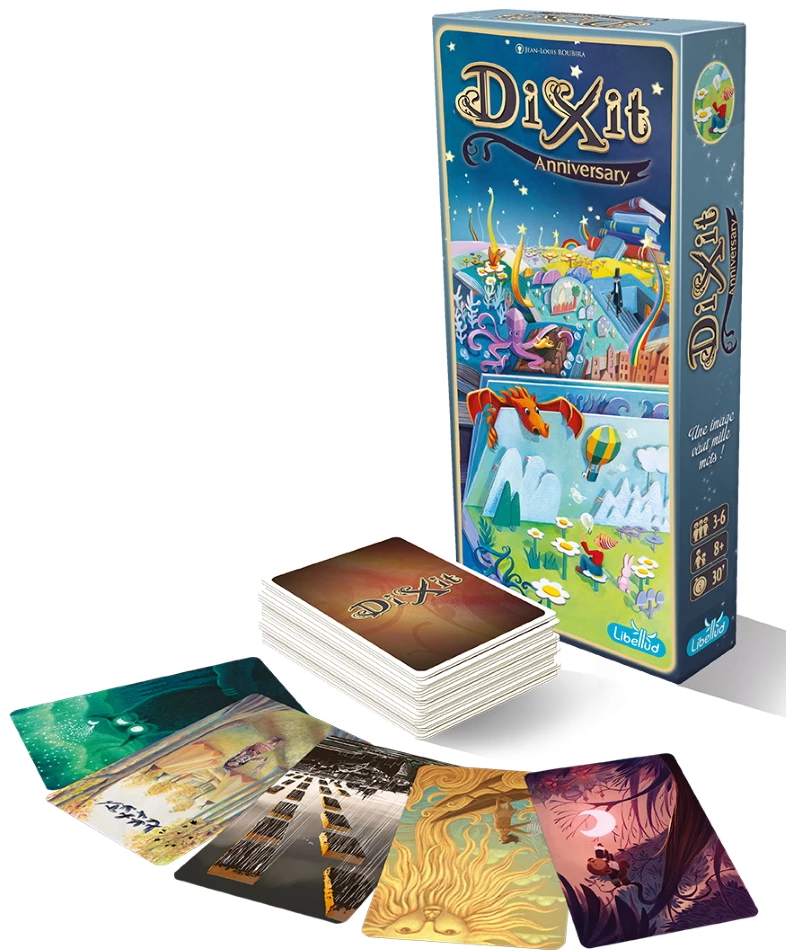 Pour son dixième anniversaire, Dixit s’enrichit d’une nouvelle extension un peu particulière. En effet, nous avons invité l’ensemble des illustrateurs qui ont déjà participé à l’aventure Dixit à réaliser de nouvelles illustrations pour l’extension Dixit Anniversary. Les 84 cartes inédites ont donc été réparties entre les différents illustrateurs.