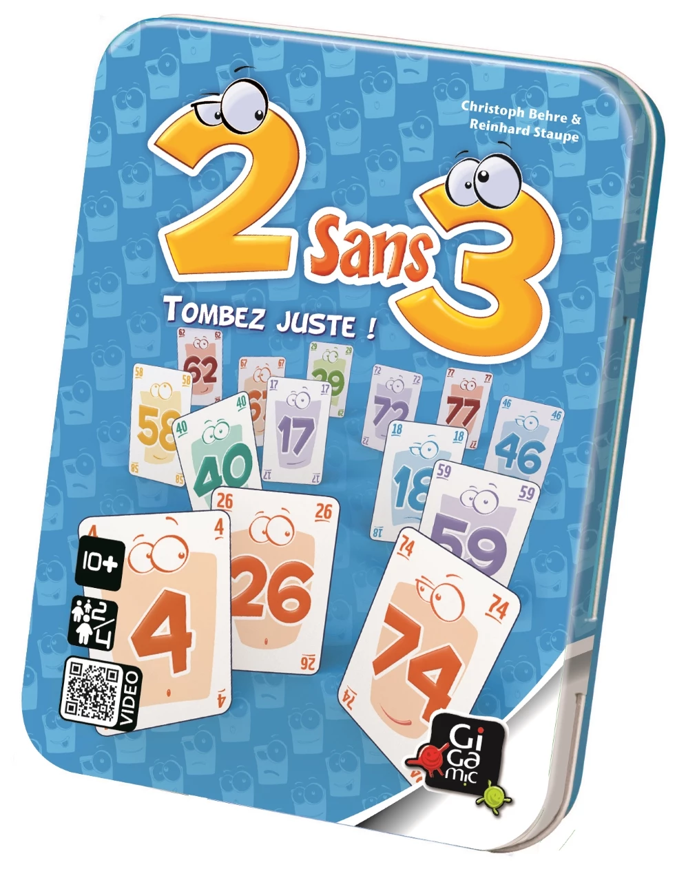 A leur tour les joueurs posent une carte dans l’une des rangées communes en respectant les règles de placement. Si la carte d’un joueur est la 5ème de sa rangée, il doit prendre une ou plusieurs cartes. Puis, c’est au tour du joueur suivant, etc. Prendre une carte d’une couleur c’est bien, en prendre deux c’est encore mieux… mais en prendre trois c’est la cata : les trois cartes sont converties en point négatifs ! Visez juste pour poser vos cartes au bon endroit au bon moment. 2 sans 3 réussit le pari de réunir tout type de joueurs autour de la table : novices comme passionnés auront grand plaisir à se retrouver autour de ce jeu rapide, drôle et très malin.
