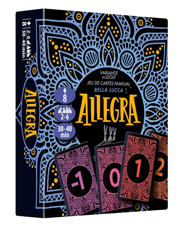 ALLEGRA est une variante semi-coopérative du jeu de cartes connu depuis longtemps sous le nom de « golf » dans le monde anglo-saxon. Jusqu’à récemment, on utilisait des cartes de poker pour y jouer.