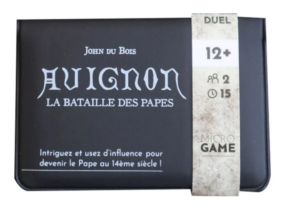 Avignon : La Bataille des Papes est un jeu de cartes de manipulation d’influence rapide dans lequel les deux joueurs sont des candidats rivaux pour le pape au 14ème siècle. Les joueurs gagnent en influence en adressant une pétition aux membres de l’Église médiévale, tels que les cardinaux, les nobles et les chevaliers, et en utilisant les pouvoirs uniques des personnages pour tirer les cartes de personnage de leur côté de la table (leur congrégation), ou forcer un adversaire à pousser les cartes vers eux.