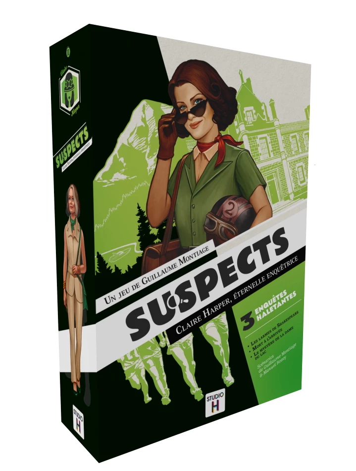 Suspects est une série de jeu d’enquêtes avec des règles minimales, et centrée sur les personnages à la manière des romans d’Agatha Christie. Chaque boîte est axée sur un enquêteur et une époque, et propose 3 scénarios avec des personnages bien travaillés et des intrigues solides.