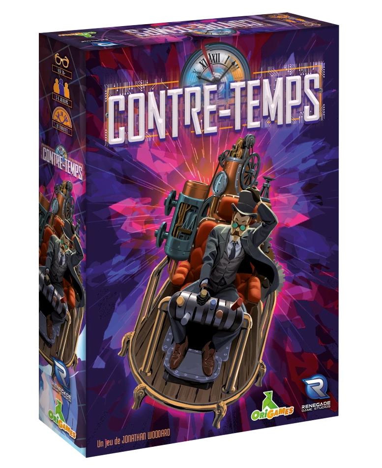 Contre-Temps est un jeu de plis comportant une subtilité majeure : vous avez la possibilité de revenir aux plis précédents, appelés événements, pour en modifier le résultat. Un pli remporté n’est donc pas encore gagné. Défendez-le jusqu’à la fin de la partie, ou défiez ceux de vos concurrents. Le premier joueur qui parvient à prendre le contrôle de trois événements de la ligne du temps est déclaré vainqueur !