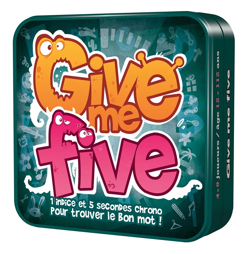 Give Me 5 se joue par équipes. Vous devrez d’abord trouver un mot commençant par la lettre tirée et correspondant au thème imposé. Une fois que vous aurez une proposition, il faudra la faire deviner à votre partenaire en lui donnant un indice ! Ce dernier aura 5 secondes pour trouver la réponse.