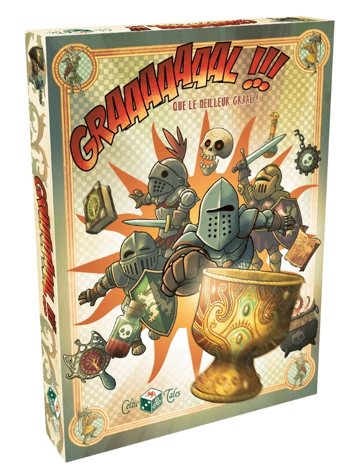 Chaque joueur doit reconstituer une famille de 4 cartes d’un Chevalier de la Table Ronde le plus vite possible. Sitôt une famille complétée, il faudra se précipiter sur le plateau au centre de la table représentant le Graal en criant GRAAAAAAAL !!! Mais attention, les autres joueurs devront eux aussi venir taper dessus le plus rapidement possible et mieux vaut ne pas être le dernier. L’ordre des mains détermine l’ordre du choix des cartes trésors et le moins rapide sera le moins bien servi, à moins que des évènements inattendus ne viennent perturber la partie et vous permettent d’entourlouper vos voisins.