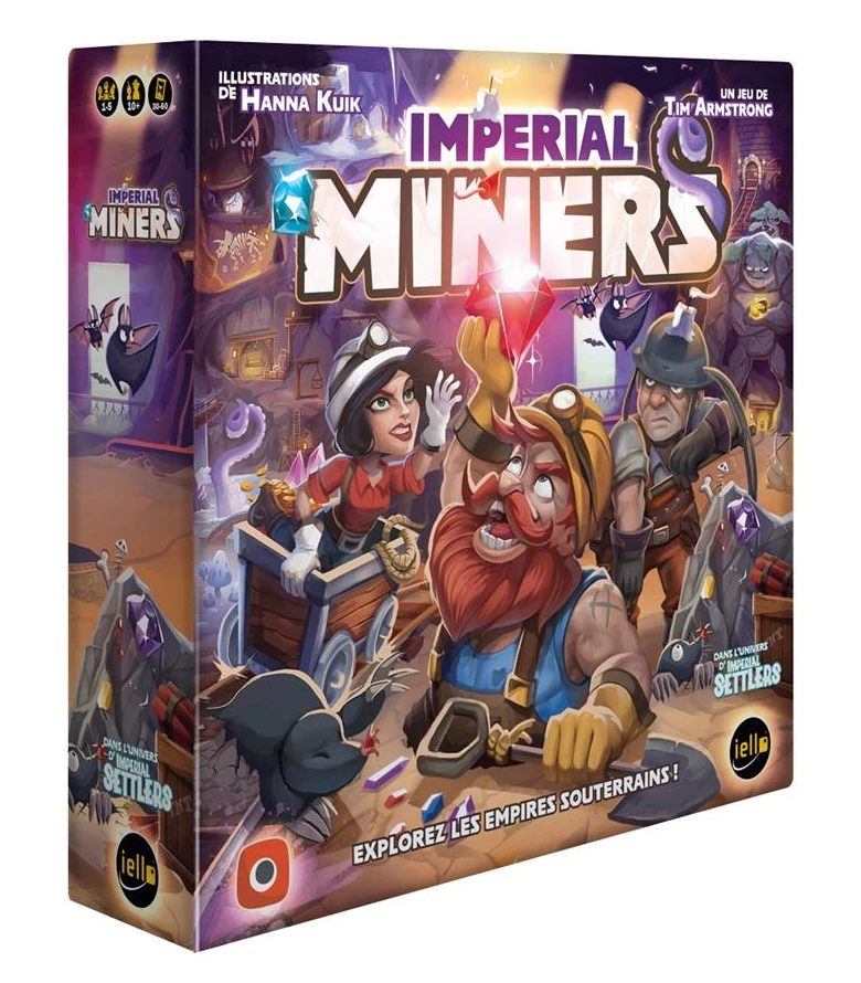 Impérial Miners est un jeu de cartes de construction de moteur léger conçu pour 1 à 5 joueurs dans lequel les joueurs explorent des mines grâce à un ingénieux système d’activation de cartes. Ce jeu est situé dans l’univers populaire d’Imperial Settlers et propose de magnifiques illustrations, des règles faciles à assimiler et un gameplay satisfaisant, riche en réactions en chaîne et en synergies de construction de moteur.