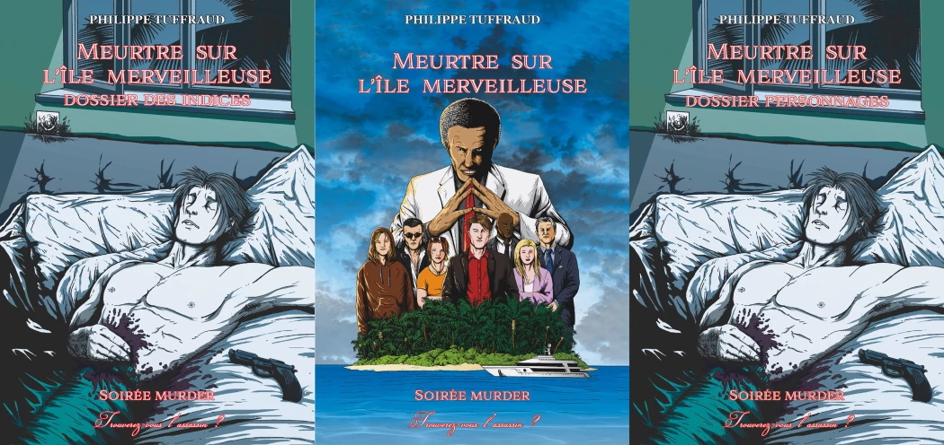 Dégrafez par le milieu du livret les feuilles de personnages pour en donner une à chaque joueur ainsi que la page recto verso (à découper) « Une soirée murder Kezako » / « Préambule et règles ». Les joueurs ont tout ce qu’il faut pour jouer. Vous pourrez utiliser la couverture au cours de la soirée pour montrer les personnages, la scène du meurtre, le plan de l’ile et donner à lire le testament d’Onyx en deuxième heure de la soirée murder. En fin de partie vous pourrez donner une page « Résumé et explications » à chaque joueur.