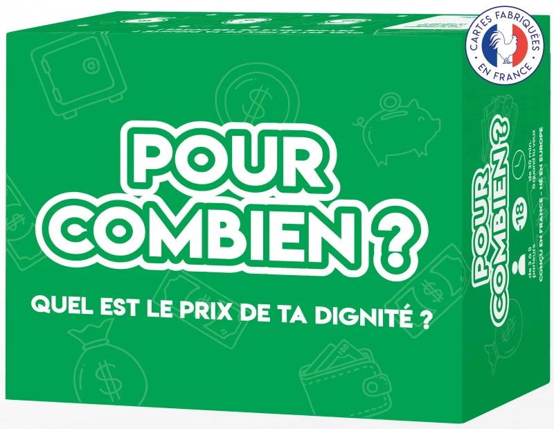 Le Pour Combien ?, c’est le jeu qui va montrer Ă tes potes Ă quel point tu es en manque d’argent. Un joueur tire une carte pour combien (par exemple pour combien tu te fous Ă poil dans le mĂ©tro?) et doit poser face cachĂ©e une carte avec un montant que les autres joueurs devront deviner.