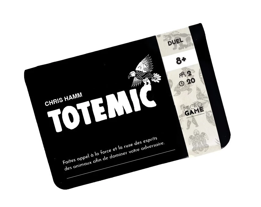 Totemic est un duel tendu aux magnifiques illustrations et qui poussera les joueurs à gérer au mieux leurs actions mais également à bluffer grâce à un système inspiré du dé videau au Backgammon.